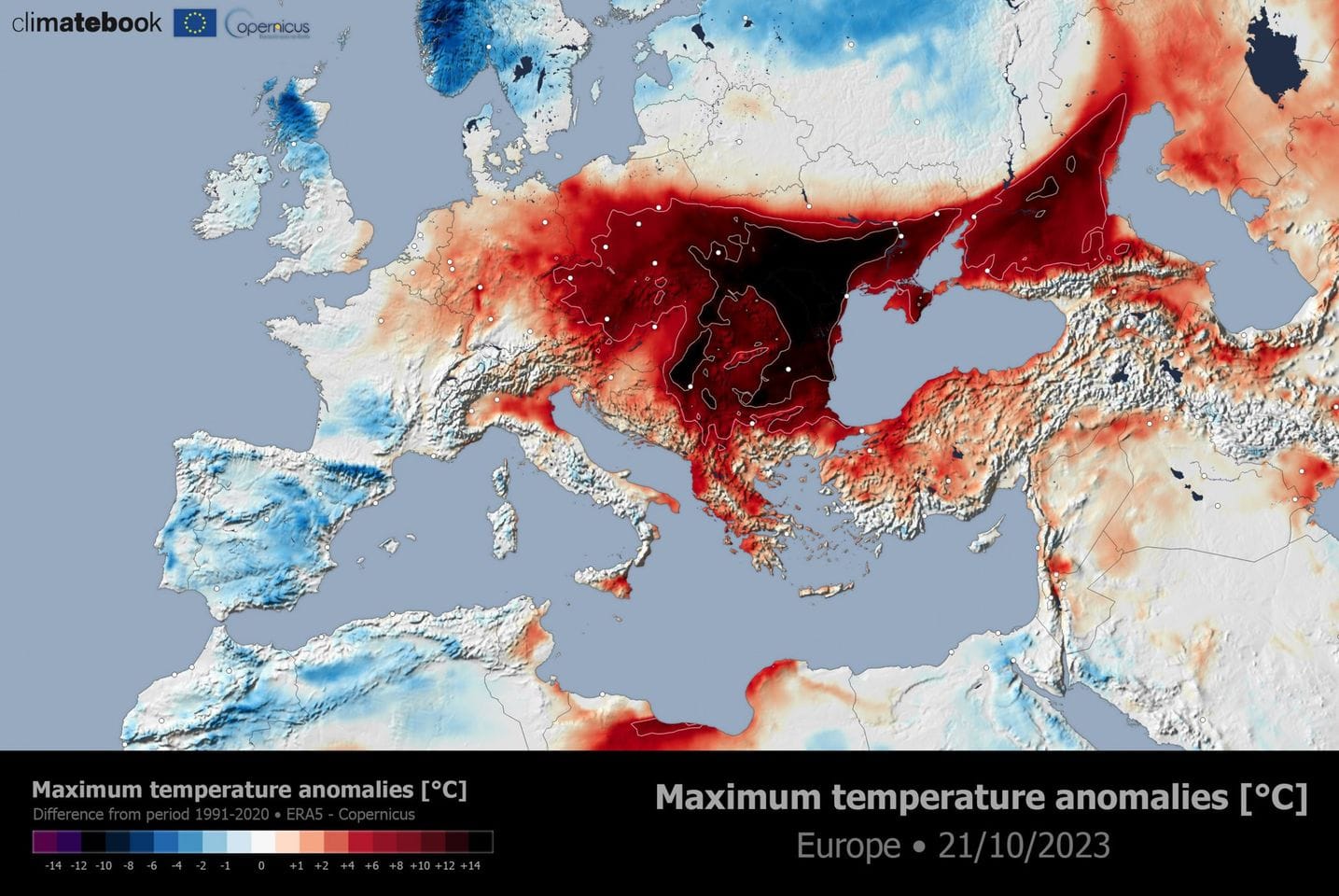 Εξαιρετικά υψηλές θερμοκρασίες επικράτησαν τις τελευταίες 3 ημέρες (20-22.10.2023) στην Ανατολική Ευρώπη και κυρίως στα Βαλκάνια.