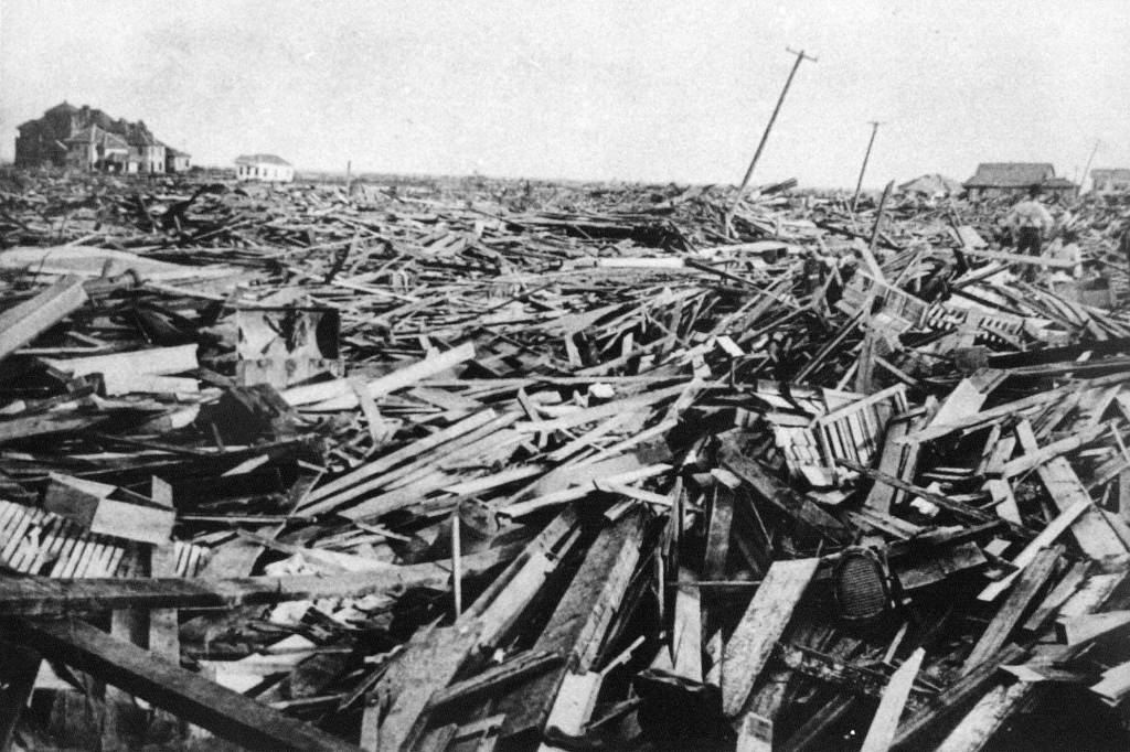 On September 8, 1900, Galveston, Texas, faced one of the deadliest natural disasters in United States history: the Great Galveston Hurricane. This Category 4 hurricane struck the island city with winds estimated at up to 145 miles per hour, generating a massive storm surge that reached approximately 15 feet, overwhelming the city’s seawall and flooding vast areas of Galveston. At the time, forecasting and understanding of hurricanes were limited, and the city was unprepared for the magnitude of the disaster that was about to unfold.