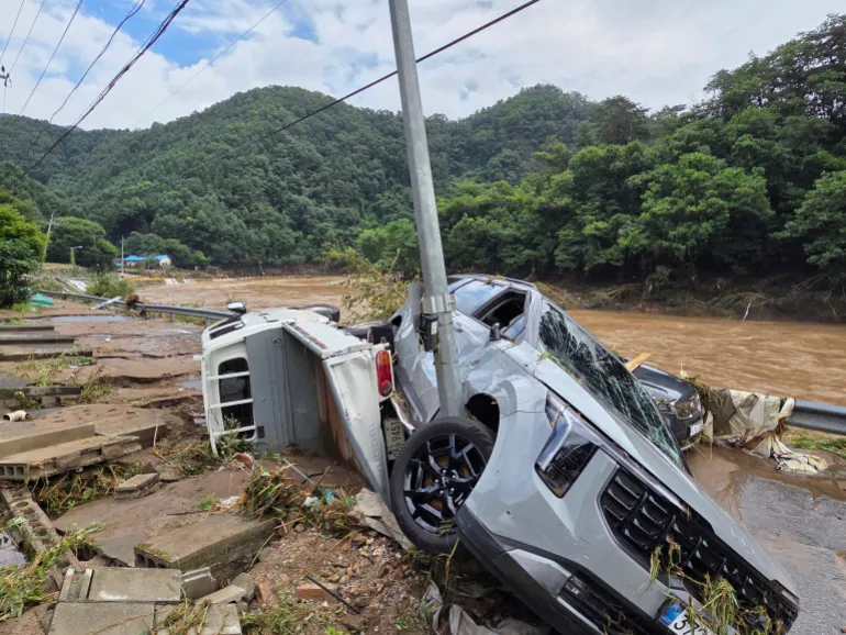 Close to 170mm (6.7 inches) of rainfall was recorded in the area in Gyeonggi province, about 70km (40 miles) east of Seoul, early on Sunday.
