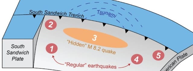 Researchers described an initial rupture that happened deep below the oceanic crust in between the South American and South Sandwich tectonic plates at a depth of around 29 miles. This earthquake, which measured 7.5 on the Richter Scale, then triggered other quakes, including a much shallower—and much more violent—third earthquake.