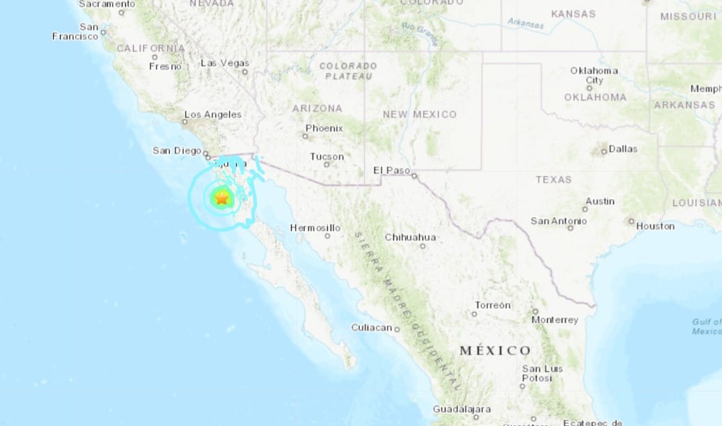 The quake, about 30 km (18.6 miles) west-southwest of Las Brisas in Baja California, struck at a depth of 19 kilometers (12 miles), USGS added.