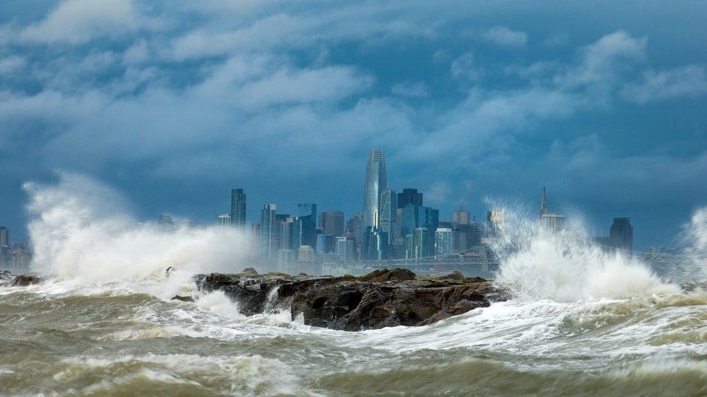 Waves lap up on the seawall of the Embarcadero. Flood alerts for nearly 40 million people in California. Reports says Latest Storm is too much powerful. #CAwx #flood #Flooding #Mudflow #LosAngeles #CaliforniaStrom #SantaBarbara #USFlood #SantaMonica #California #LosAngeles #USA # pic.twitter.com/ztf979AvvR