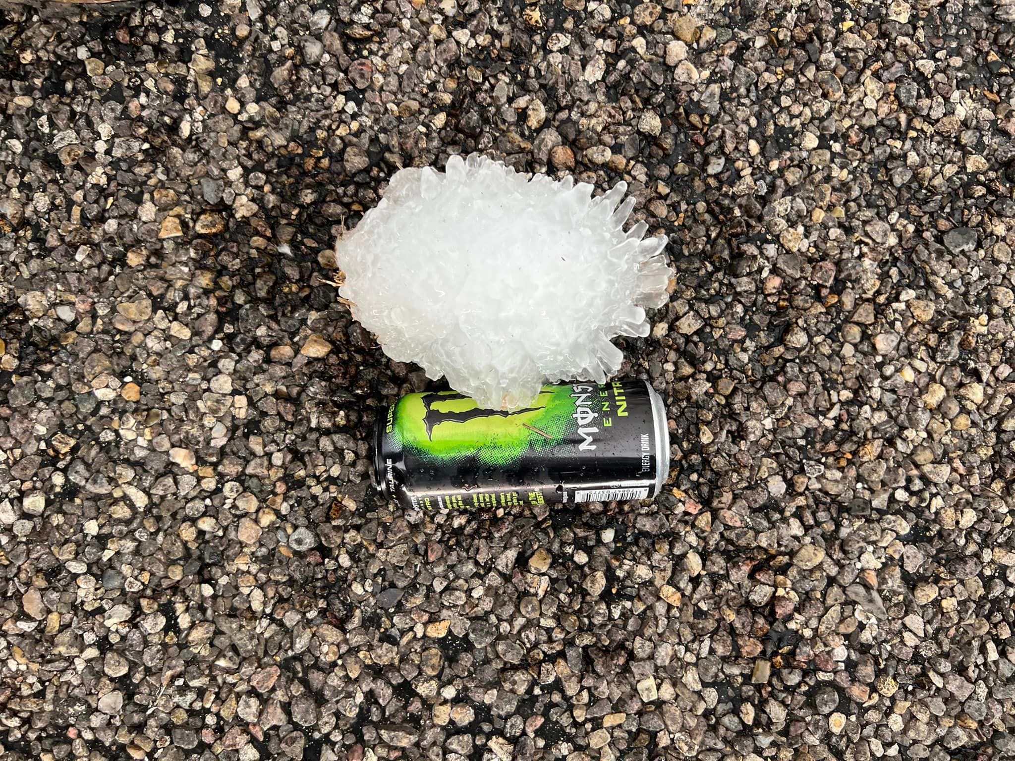 Val Castor, a storm chaser with NEWS 9 in Oklahoma City, posted photos on Facebook that showed the giant hail chunks he found after a tornado passed through the Texas Panhandle.