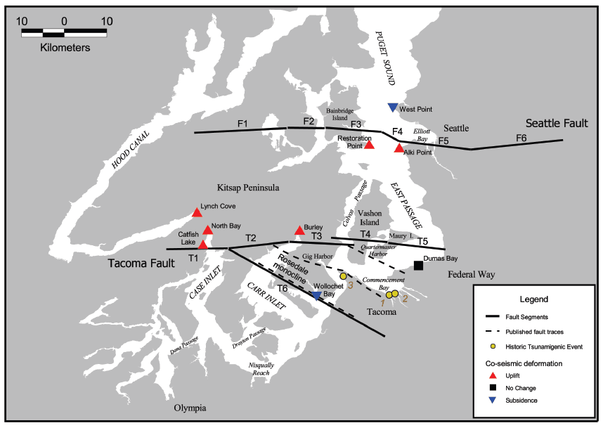 The fault is part of a broader network of fault lines within the Puget Lowland region, which also includes the Tacoma Fault and the South Whidbey Island Fault. The Seattle Fault is categorized as a crustal fault, indicating its association with the Earth’s crust, and it poses a potential seismic hazard due to its proximity to a densely populated urban area.