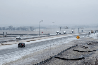 Snow and ice accumulates on North Martin Luther King Boulevard in Lexington, Ky., over 20 hours from Sunday, Jan. 5 to Monday, Jan. 6, 2025