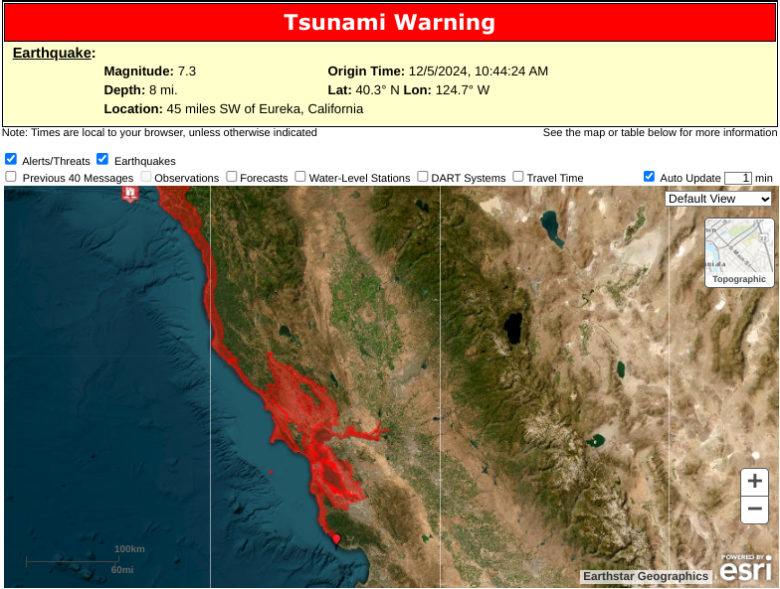 The tsunami warning issued by the weather service was in effect from the area of Davenport in Santa Cruz County up into Oregon. At around 11:30 a.m., meteorologists from the NWS were awaiting updates on wave predictions and observations, but none had arrived.