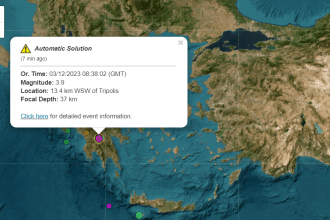 Το επίκεντρο της δόνησης εντοπίζεται στον θαλάσσιο χώρο 52 χλμ. νοτιοδυτικά της Παλαιοχώρας Χανίων.