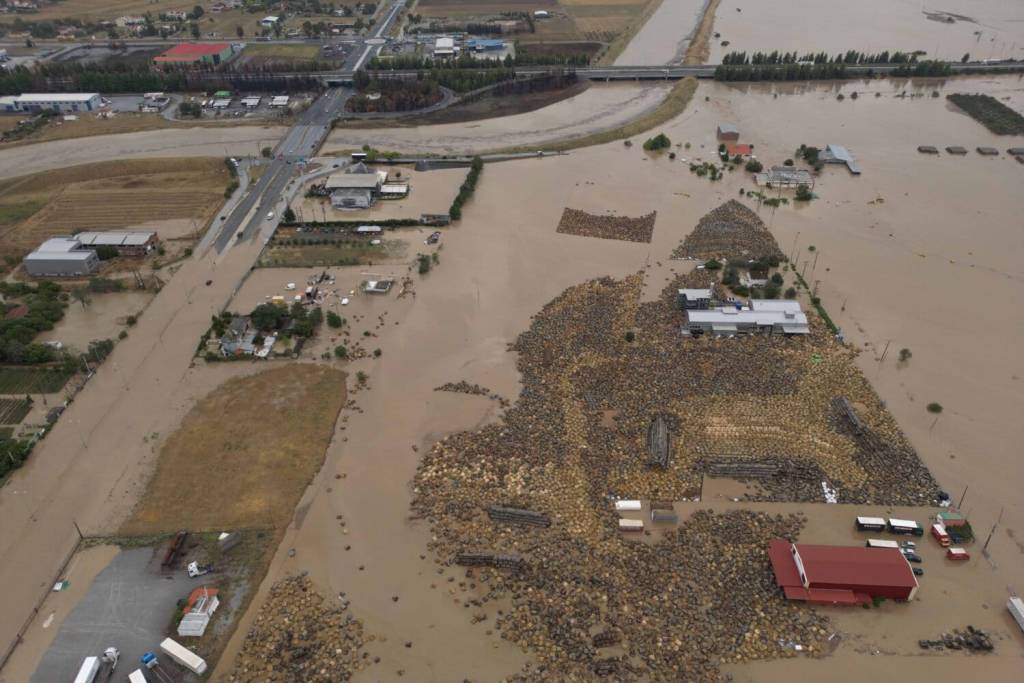 Απέραντη θάλασσα θυμίζουν οι εκτάσεις παραπλεύρως της οδού Βόλου. Χωράφια, οικόπεδα, περιβάλλοντες χώροι επιχειρήσεων, ακόμη και το οδόστρωμα στο δρόμο προς Βόλο έχουν καλυφθεί από το νερό.