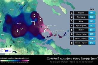Σύμφωνα με τις παρατηρήσεις από το διαθέσιμο δίκτυο μετεωρολογικών σταθμών τόσο της ΕΜΥ, του Αστεροσκοπείου κι άλλων σταθμών, όπως τόνισε ο κ. Ζιακόπουλος, φαίνεται ότι στην ορεινή περιοχή της Μαγνησίας έπεσαν 600-800 χιλιοστά βροχής σε ένα 24ωρο. «Είναι ένα τεράστιο ποσό για τα ελληνικά χρονικά και για τις περισσότερες περιοχές της Ευρώπης», σημείωσε. Ταυτόχρονα, όπως υπογράμμισε, «στη πεδινή Θεσσαλία τα 24ωρα ποσά που σημειώθηκαν του υετού, της βροχής, ήταν ανάμεσα στα 400-500 χιλιοστά που είναι κι αυτή μια πάρα πολύ μεγάλη τιμή».