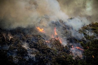 Το έργο των πυροσβεστικών δυνάμεων γίνεται πιο δύσκολο, αφού η φωτιά καίει κοντά σε μηχανουργείο και οι προσπάθειες επικεντρώνονται στο να μη φτάσει εκεί.