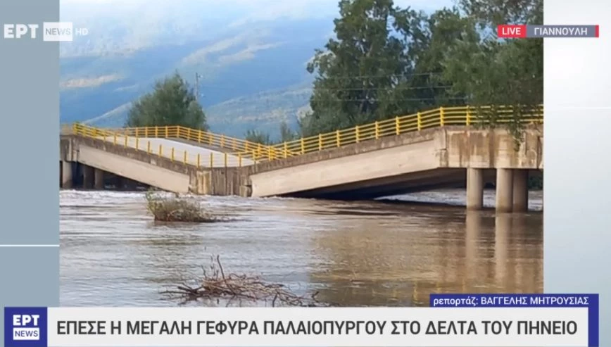 Δίχως τέλος η καταστροφή στη Θεσσαλία από την κακοκαιρία Daniel, αφού δεν άντεξε και η γέφυρα στον Παλαιόπυργο, η οποία κατέρρευσε.