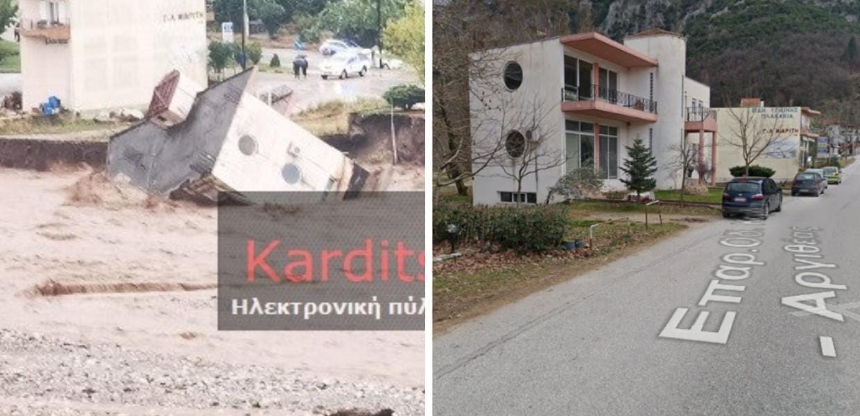 Ο Πάμισος φούσκωσε και παρέσυρε τεράστιους όγκους εδάφους – Το κτίριο που φέρεται να φιλοξενούσε γυμναστήριο βρέθηκε κυριολεκτικά στο κενό