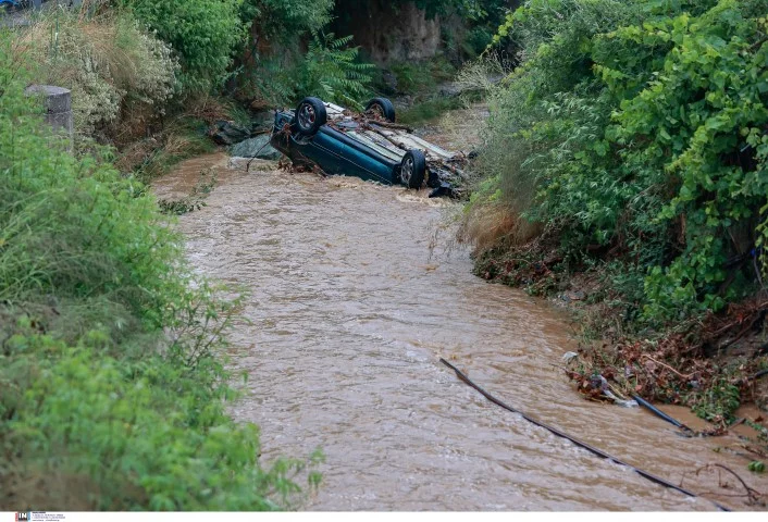 Στην παραλία Αγίου Ισιδώρου στο Πλωμάρι το ποτάμι κατέβασε μεγάλο όγκο νερού με αποτέλεσμα να παρασυρθεί ένα αυτοκίνητο που ήταν παρκαρισμένο στην περιοχή αλλά και ξαπλώστρες και ομπρέλες της παρακείμενης επιχείρησης.