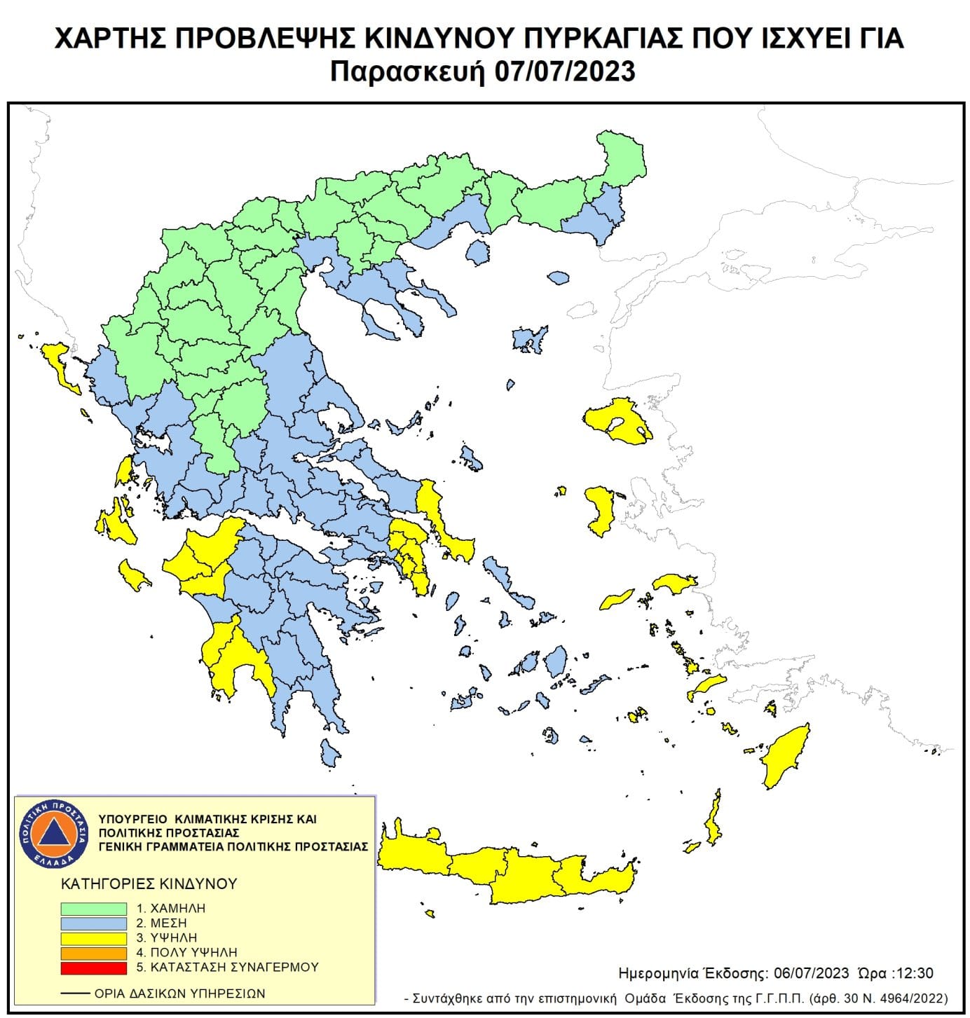⚠️ Χάρτης Πρόβλεψης Κινδύνου 🔥 για αύριο Παρασκευή 07/07: