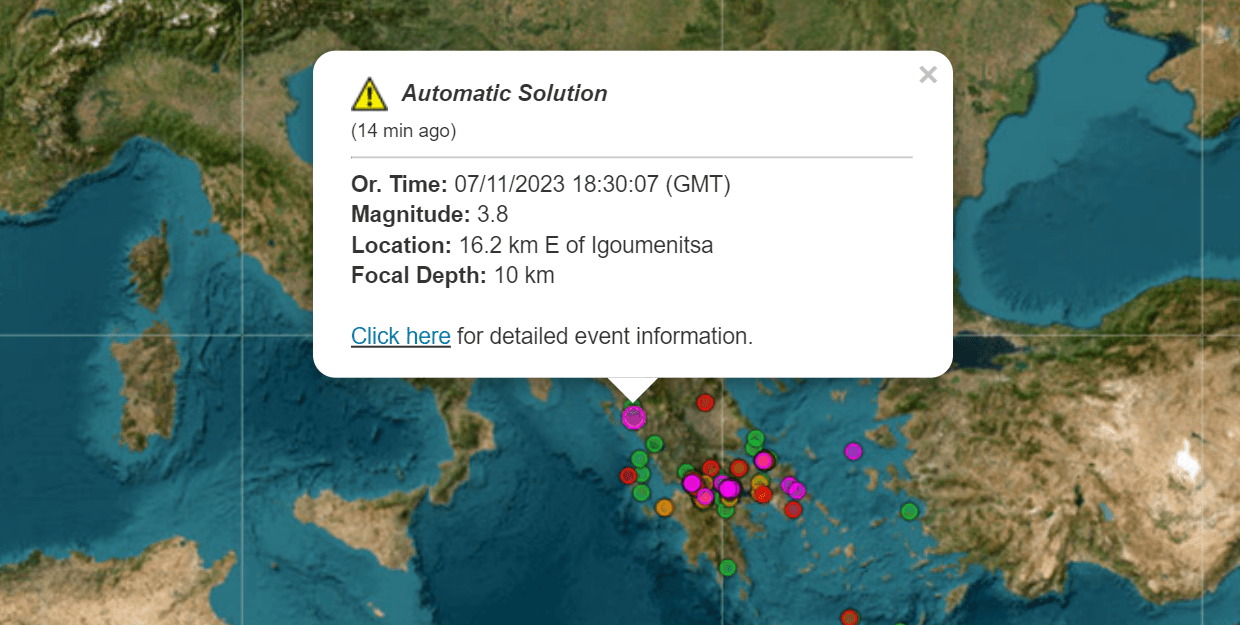 Σεισμική δόνηση μεγέθους 3,9 ρίχτερ σημειώθηκε πριν από λίγη ώρα με επίκεντρο 10 χιλιόμετρα δυτικά Δυτικά- Βορειοδυτικά της Παραμυθιάς Θεσπρωτίας και 16,2 χιλιόμετρα Ανατολικά της Ηγουμενίτσας. Το εστιακό βάθος της δόνησης ήταν 10 χιλιόμετρα.