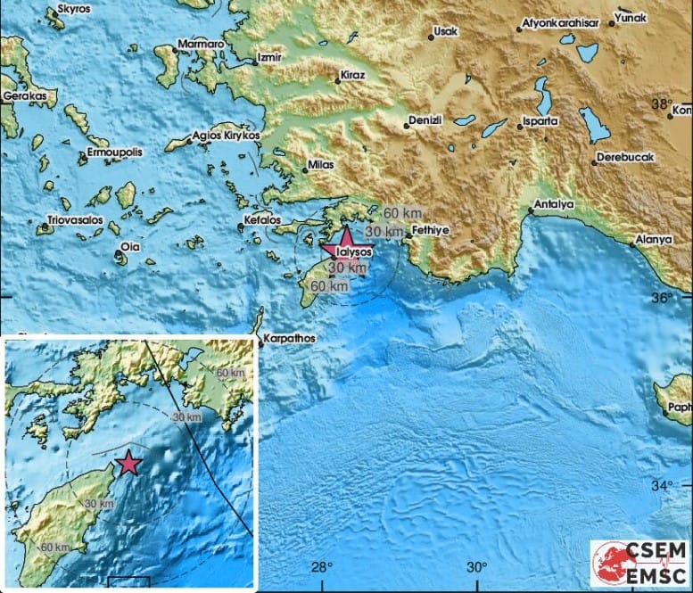 Σεισμός 4,2 Ρίχτερ σημειώθηκε πριν από λίγο στα ανοιχτά της Ρόδου.