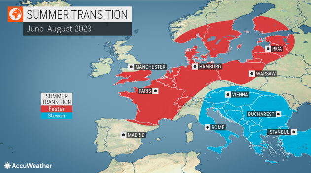 Ο Tyler Roys και ο Alan Reppert, μετεωρολόγοι στο AccuWeather που έχουν μελετήσει τα μοτίβα του καιρού σε όλη την ήπειρο για περισσότερες από τρεις δεκαετίες λένε ότι ο καλοκαιρινός καιρός θα ξεκινήσει γρήγορα σε όλη την κεντρική και βόρεια Ευρώπη, ενώ οι νοτιοανατολικές περιοχές,συμπεριλαμβανομένης της Ελλάδας, ενδέχεται να αντιμετωπίσουν μια πιο αργή μετάβαση στη νέα σεζόν.