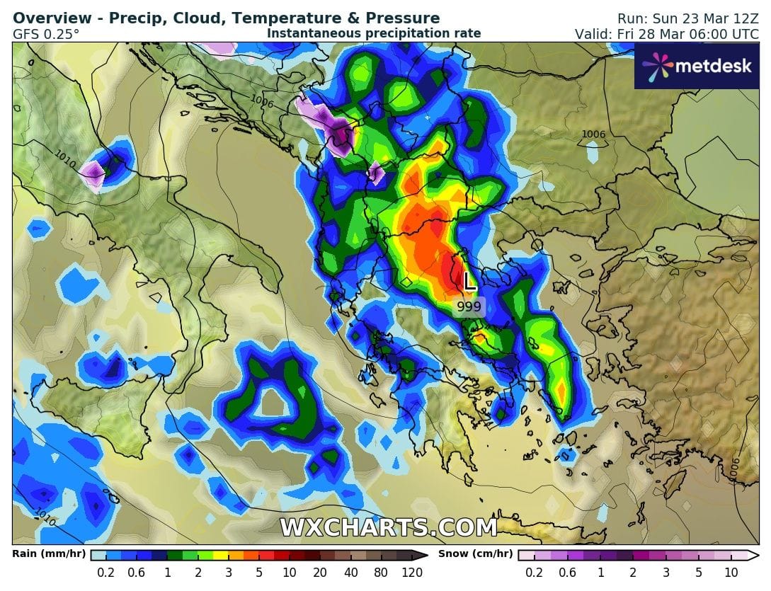 Απο την Πέμπτη μέχρι το επόμενο ΣΚ και σύμφωνα με τα τελευταία στοιχεία που πάιρνουμε απο τα παγκόσμια προγνωστικά μοντέλα ένα βαθυ χαμηλό βαρομετρικό αναμένεται να επηρεάσει την χώρα και όπως όλα δείχνουν θα έχουμε αρκετές βροχές αρχικά στα νησιά του Ιονίου ,την δυτική Στερεά, την Ήπειρο και την Μακεδονία και απο την Παρασκευή και στις υπόλοιπες περιοχές της χώρας .
