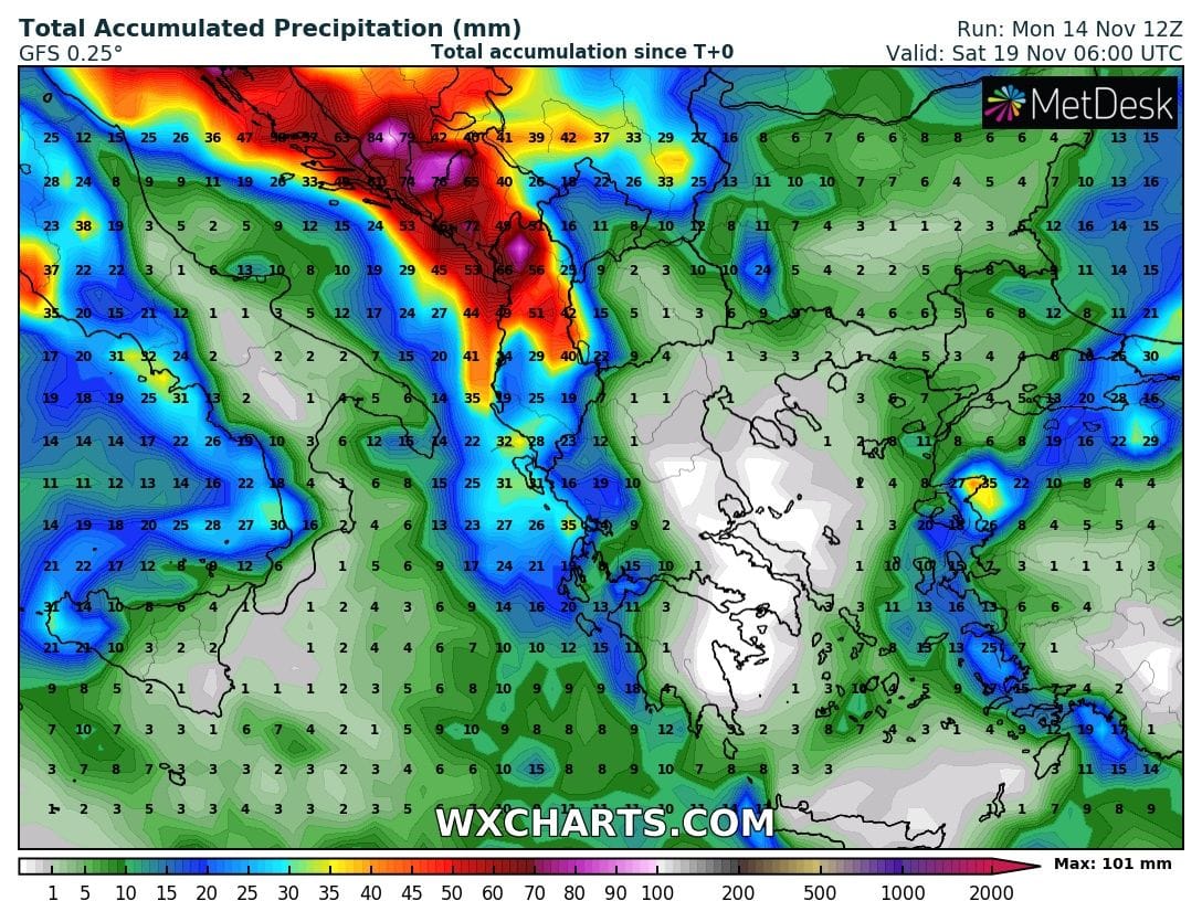 Όπως μπορείτε να δείτε και στον παρακάτω χάρτη οι διατάξεις των μετεωρολογικών συστημάτων θα είναι τέτοιες που θα ευνοούν τα βροχοσυστήματα να κινούνται από την κεντρική Ευρώπη προς τη Μεσόγειο και τη χώρα μας.