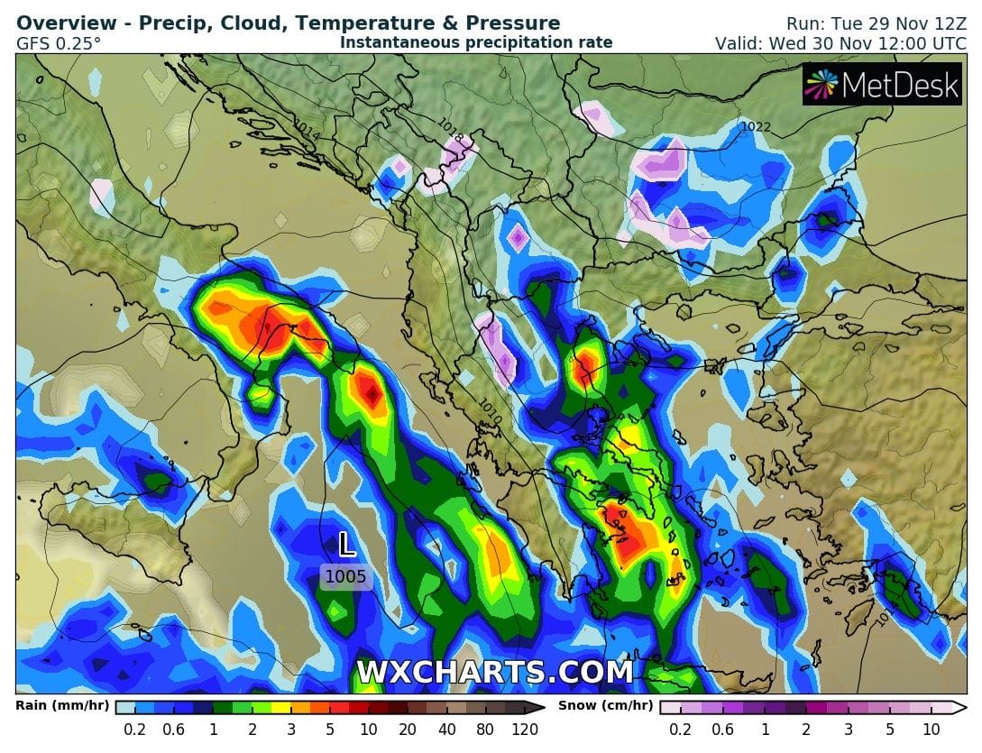 Σημαντική επιδείνωση θα παρουσιάσει ο καιρός την Τετάρτη στις περισσότερες περιοχές της χώρας με κύρια χαρακτηριστικά τις βροχές και τις κατά τόπους έντονες καταιγίδες.