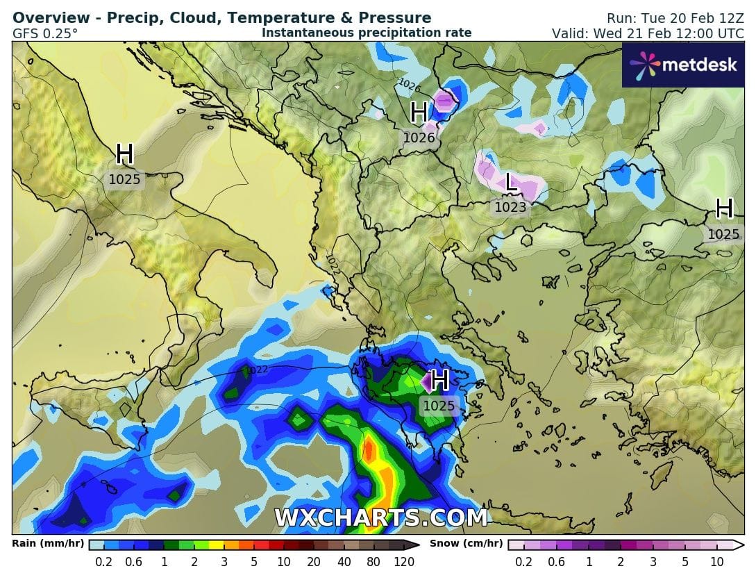 Βαρομετρικό χαμηλό στην νότια Ιταλία θα μετακινηθεί ανατολικότερα την Τετάρτη με αποτέλεσμα να επιδεινωθεί ο καιρός σε περιοχές της νοτιοδυτικής Ελλάδας .