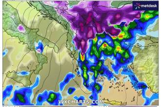 Παρόμοιο θα παραμέινει και αύριο το σκηνικό του καιρού το οποίο διαμορφώνεται υπό την επίδραση ενός βαρομετρικού χαμηλού που παραμένει σχεδόν στάσιμο στην περιοχή της Κορσικής, σε συνδυασμό με νοτιάδες που ενισχύονται σημαντικά. Το αποτέλεσμα είναι αυξημένη αστάθεια στα δυτικά και βόρεια της χώρας, με φαινόμενα που κατά τόπους ενδέχεται να αποκτήσουν έντονο χαρακτήρα.