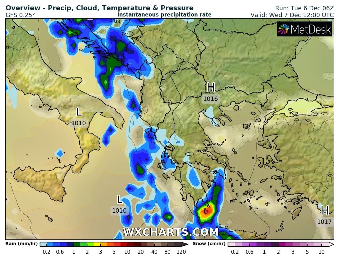 Ατμοσφαιρική διαταραχή θα επηρεάσει την Τετάρτη τις περισσότερες περιοχές της χώρας με κύρια χαρακτηριστικά τις ισχυρές βροχές και καταιγίδες στα δυτικά τα κεντρικά και τα νότια διμαερίσματα της Ελλάδας .