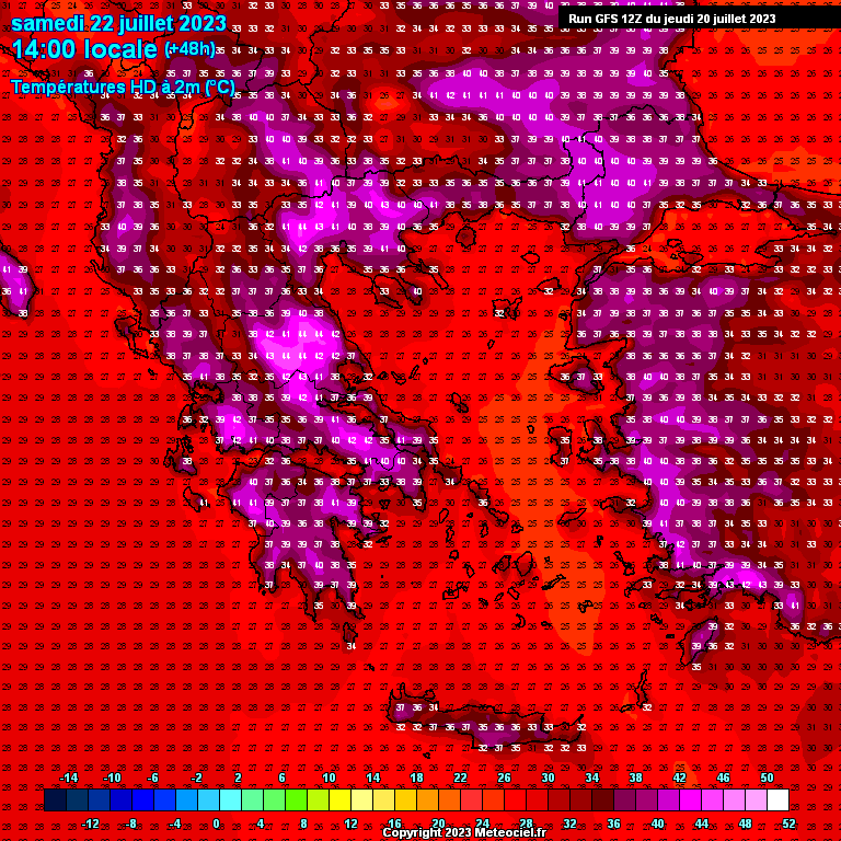 Η θερμοκρασία θα παρουσιάσει και νέα άνοδο και θα φτάσει στα βόρεια τους 41 με 42 βαθμούς Κελσίου, στα δυτικά ηπειρώτικα τους 39 με 41 βαθμούς Κελσίου, στα υπόλοιπα ανατολικά ηπειρωτικά τους 43-44 βαθμούς Κελσίου και στα νησιά του Αιγαίου την Κρήτη και τα Δωδεκάνησα τους 39 με 41 βαθμούς Κελσίου.