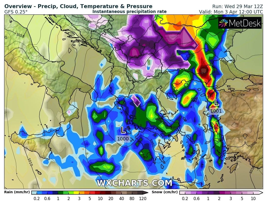Τα τελευταία σημερινά τρεξίματα των παγκόσμια μετεωρολογικών μοντέλων προβλέπουν παρόμοιες καιρικές συνθήκες και για την ερχόμενη Τρίτη και Τετάρτη.