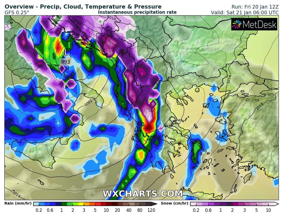 Χάρτης υετού Θεσσαλονίκης για το Σάββατο