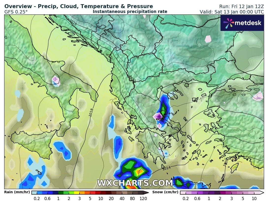 Αραιές νεφώσεις αναμένουμε το Σάββατο στις περισσότερες περιοχές της χώρας οι οποίες στα ανατολικά ηπειρωτικά τμήματα θα είναι αυξημένες και θα σημειώνονται, κατά περιόδους, τοπικές βροχές στα πεδινά και τοπικές χιονοπτώσεις στα ορεινά -ημιορεινά τμήματα .