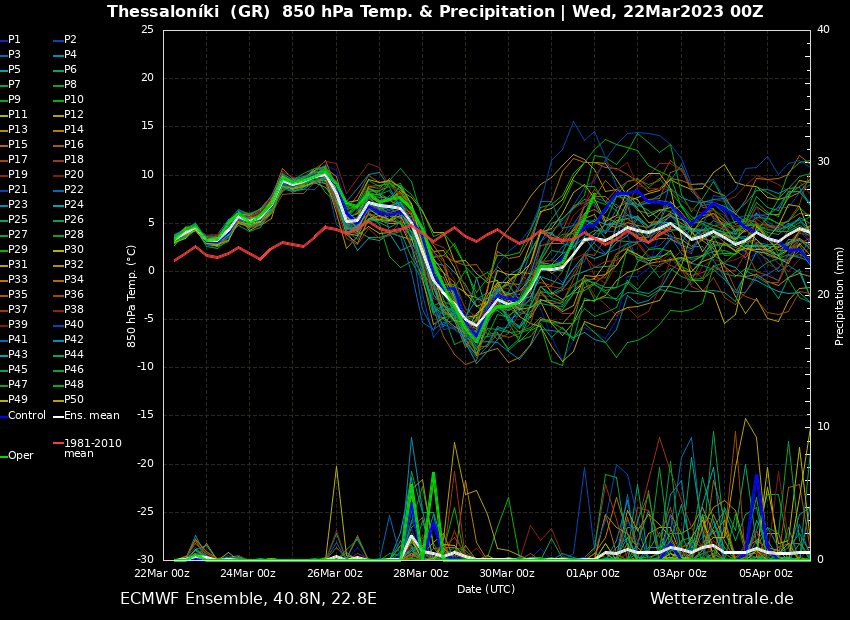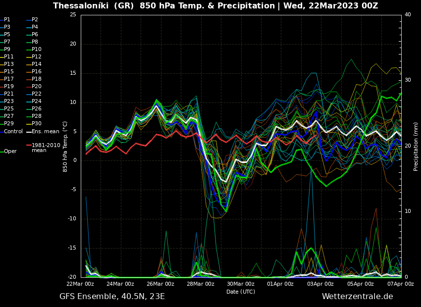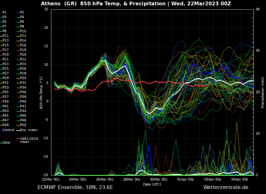 Δείτε παρακάτω τους χάρτες σεναρίων (ensembles ) του Αμερικανικού (GFS) και του Ευρωπαικού (ECMWF) μοντέλου πρόγνωσης καιρού για την πόλη της Αθήνας και της Θεσσαλονίκης.