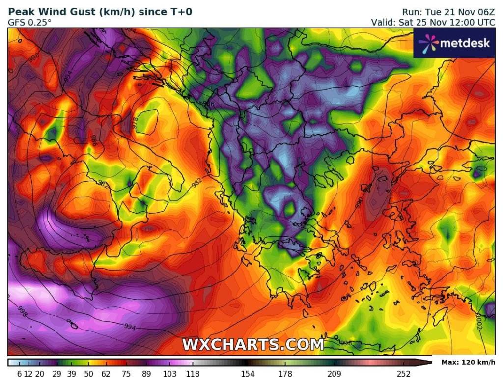 Το σύστημα αυτό αναμένεται να περάσει και πάνω από τον Ελλαδικό χώρο δίνοντας βροχές στις περισσότερες περιοχές της χώρας μας και θυελλώδεις νοτιοδυτικούς ανέμους στα πελάγη που είναι πολύ πιθανόν να δημιουργήσουν και πάλι προβλήματα στις ακτοπλοϊκές συγκοινωνίες.