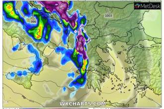 Οι άνεμοι θα πνέουν από νοτιοδυτικές διευθύνσεις φτάνοντας στο Ιόνιο και στο Αιγαίο τοπικά και τα 7 μποφόρ.