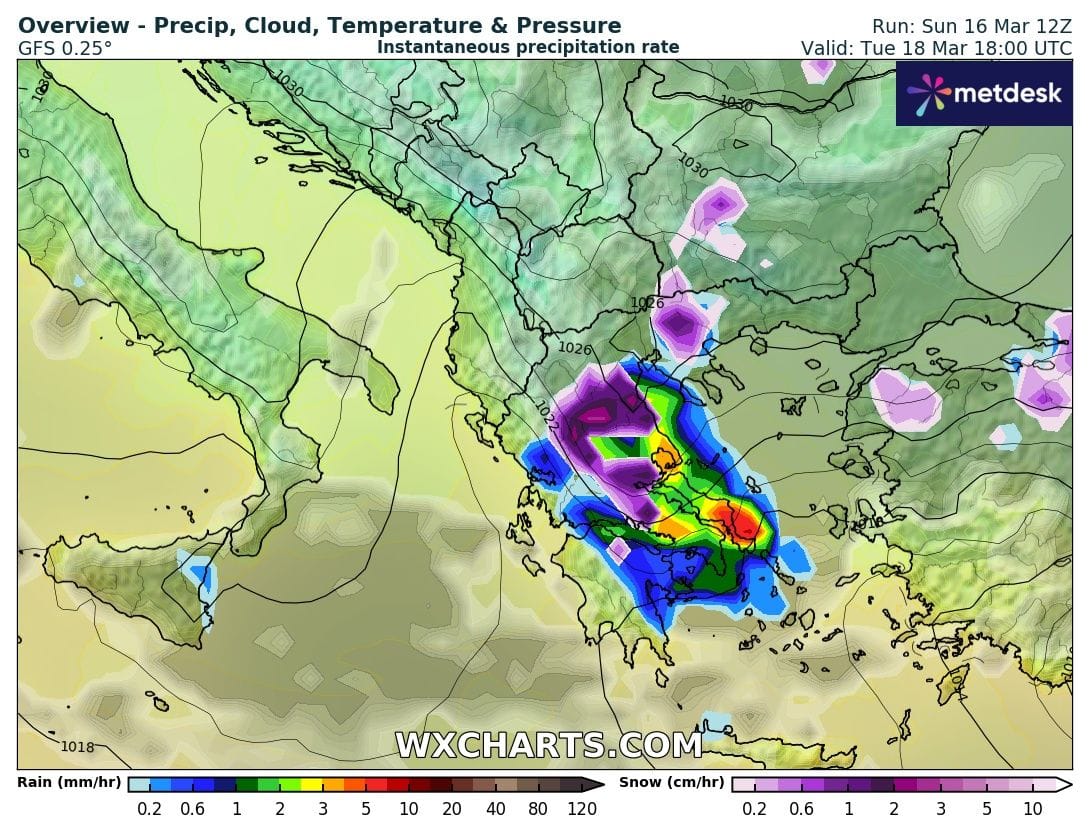 Δείτε σε ποιές περιοχές θα σημειωθούν οι περισσότερες βροχές και χιονοπτώσεις σύμφωνα με το τελευταίο τρέξιμο του Αμερικανικού μοντέλου πρόγνωσης GFS εδώ