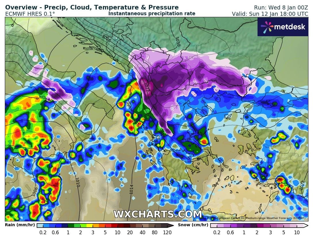 Χιονοπτώσεις θα σημειωθούν σε ορεινά και ημιορεινά τμήματα της κεντρικής καί βόρειας Ελλάδας καθώς και σε περιοχές της Ηπείρου της δυτικής Μακεδονίας και της Θράκης με χαμηλότερο υψόμετρο.