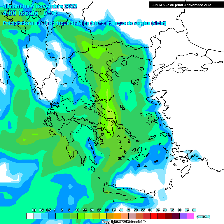 Ιδιαίτερα το χρονικό διάστημα απο τις 04.00 μέχρι 07.00 το πρωί της Κυριακής θα καταγραφούν μεγάλα ύψη βροχής .