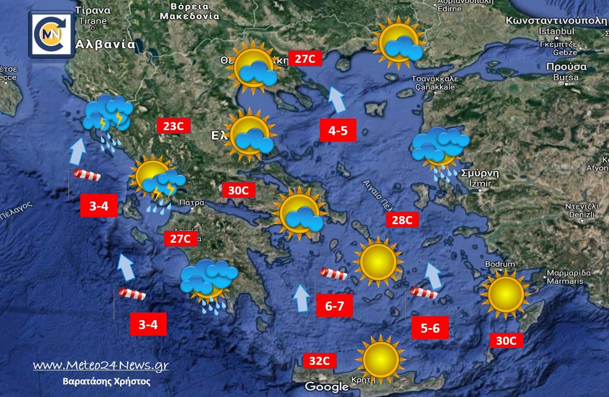 Πάντως Από τις απογευματινές ώρες και μετά τα φαινόμενα θα περιοριστούν στα νησιά του Ιονίου και την Ήπειρο.