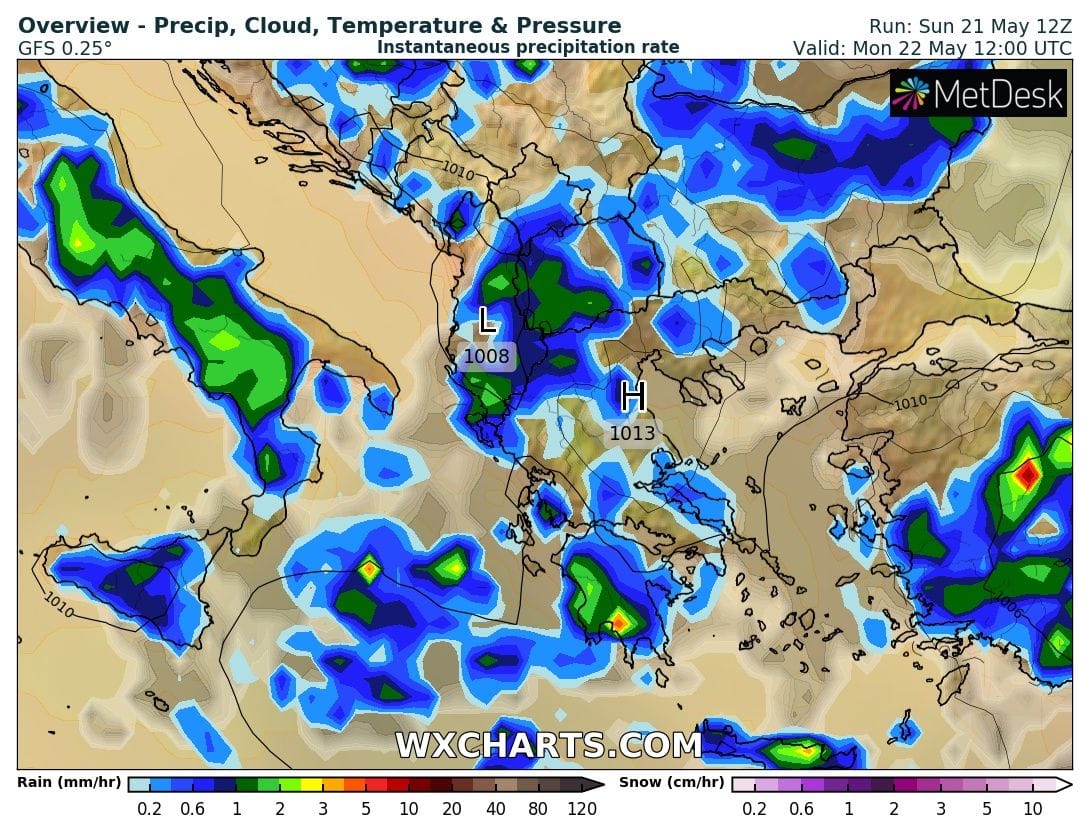Τα φαινόμενα κατά περιόδους δεν αποκλείεται να έχουν και έντονο χαρακτήρα ενώ θα συνοδεύονται από τοπικές χαλαζοπτώσεις. Οι μετεωρολογικές συνθήκες θα ευνοούν, κατά διαστήματα, τη μεταφορά σκόνης από την Αφρική κυρίως στα δυτικά και νότια διαμερίσματα της χώρας.