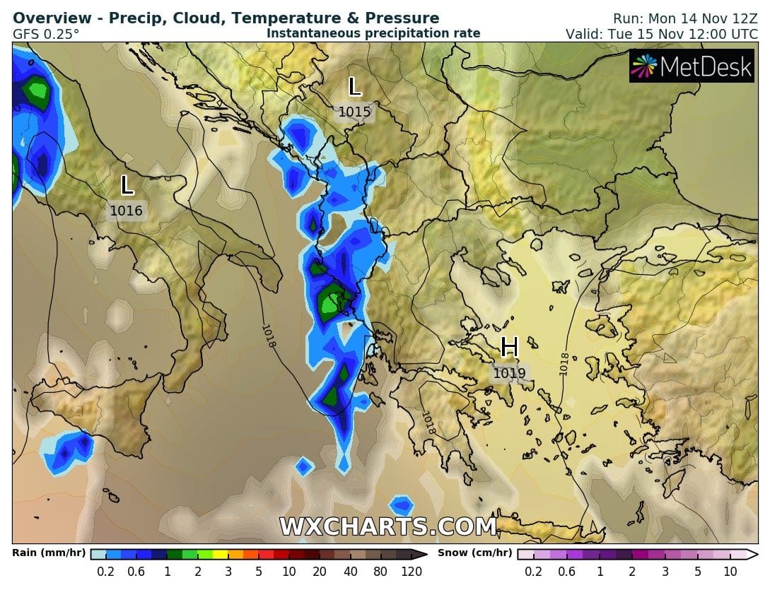 Από τις μεσημεριανές ώρες και μετά τοπικές βροχές περιμένουμε να σημειωθούν και σε τμήματα της δυτικής Στερεάς καθώς επίσης τοπικά και σε τμήματα της βορειοδυτικής Πελοποννήσου.