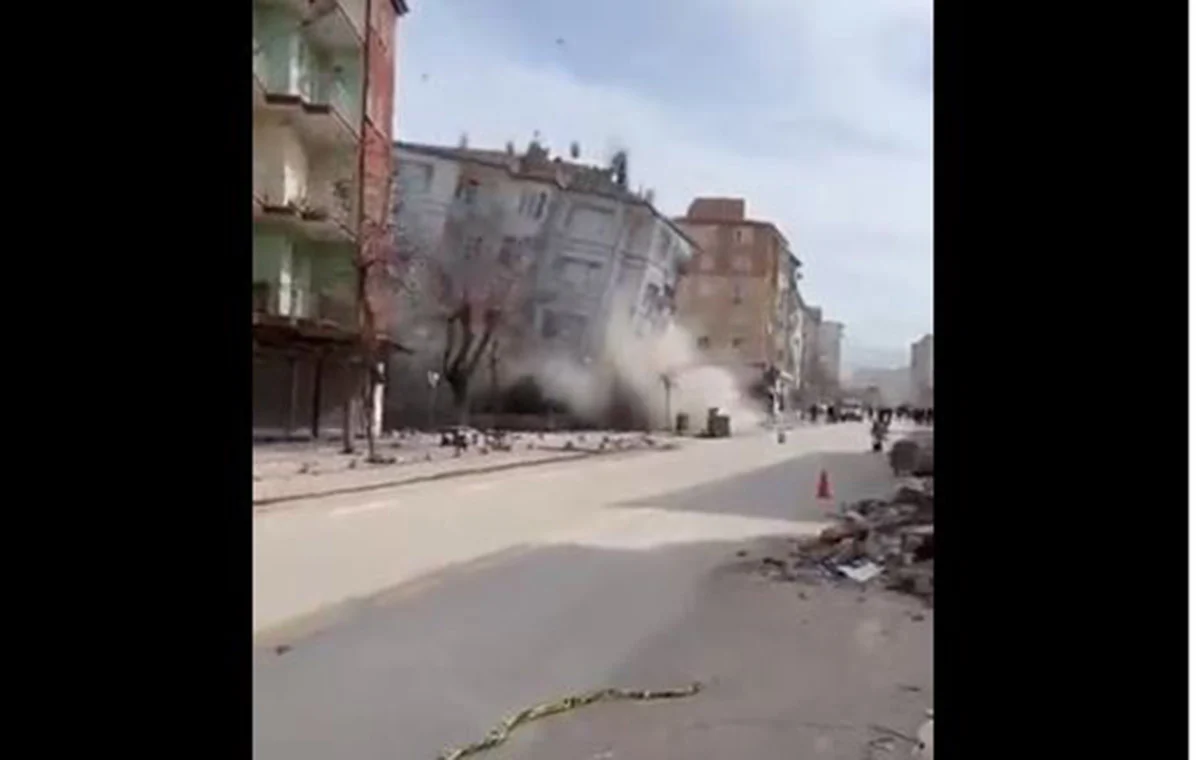 #Malatya‘da 5.6 şiddetindeki deprem sonrası bir binanın yıkıldığı an… pic.twitter.com/qBFs3d5z03