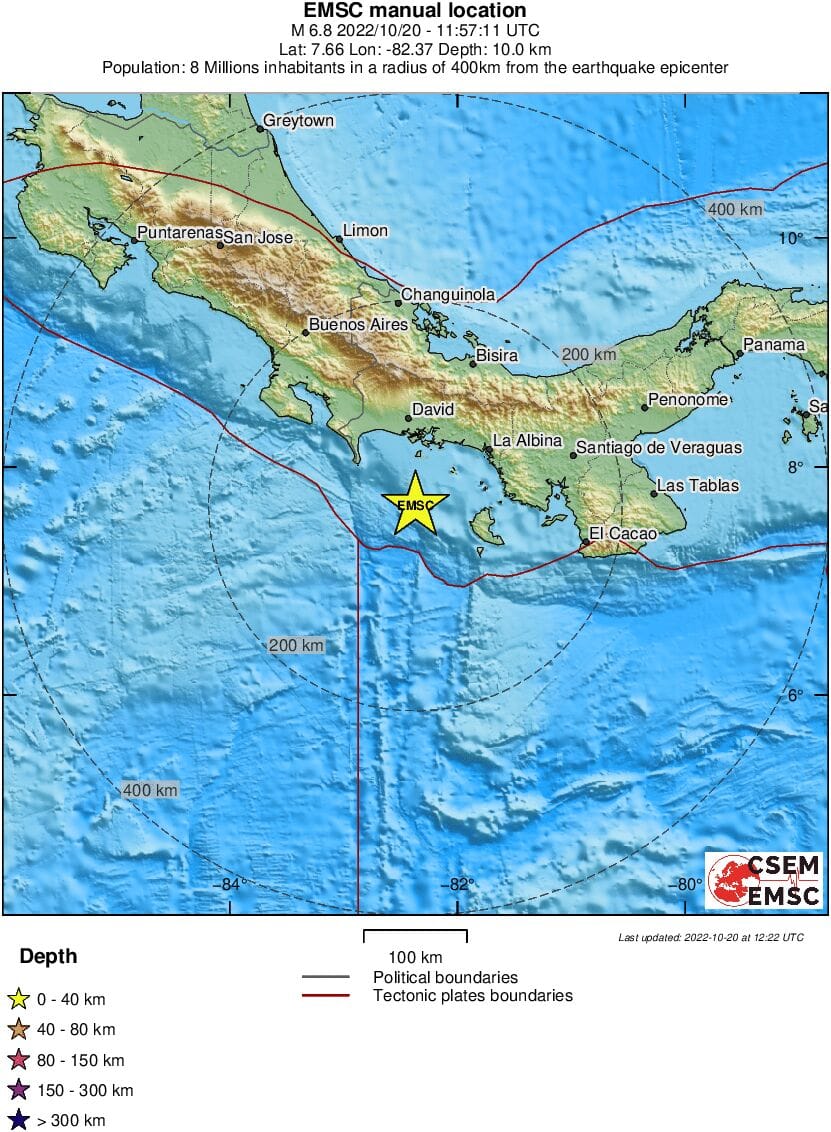 Σεισμός 6,8 ρίχτερ σημειώθηκε στον Παναμά, στα νότια της χώρας. Την πληροφορία γνωστοποίησε το Ευρωπαϊκό Μεσογειακό Σεισμολογικό Κέντρο (EMSC).