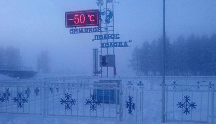 Κατά τη διάρκεια του χειμώνα, η νύχτα διαρκεί 21 ώρες το 24ωρο και η μέση θερμοκρασία κυμαίνεται στους -50°C. Εκεί, έχει καταγραφεί η χαμηλότερη ποτέ θερμοκρασία σε ανθρώπινο οικισμό, οι -67,7 βαθμοί Κελσίου που άγγιξε ο υδράργυρος το 1933. Θεωρείται το πιο παγωμένο κατοικήσιμο μέρος της Γης, καθότι στην Ανταρκτική δεν ζει μόνιμα κανείς.