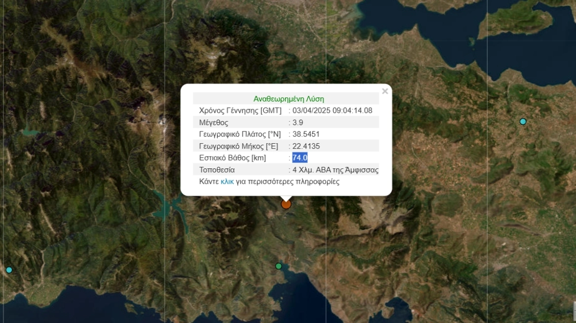 Σεισμός καταγράφηκε στην περιοχή της Άμφισσας το πρωί της Πέμπτης.
