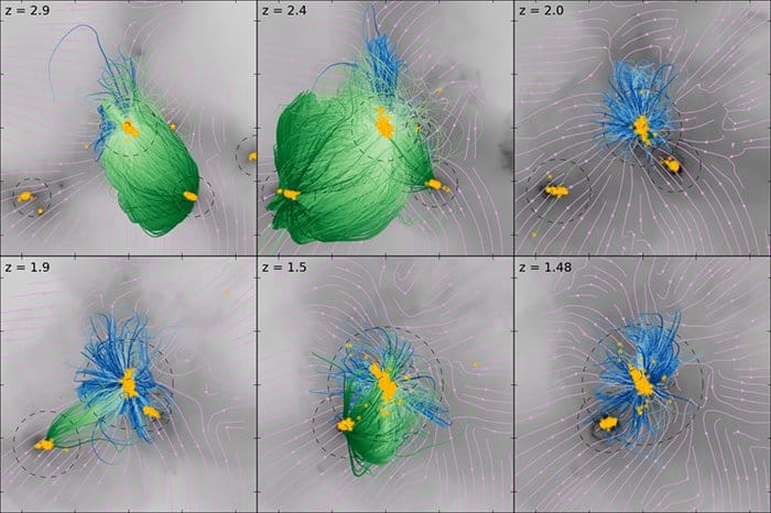 Προσομοιώσεις έδειξαν τη ροή των ανέμων μεταξύ των γαλαξιών. Πηγή: Northwestern University