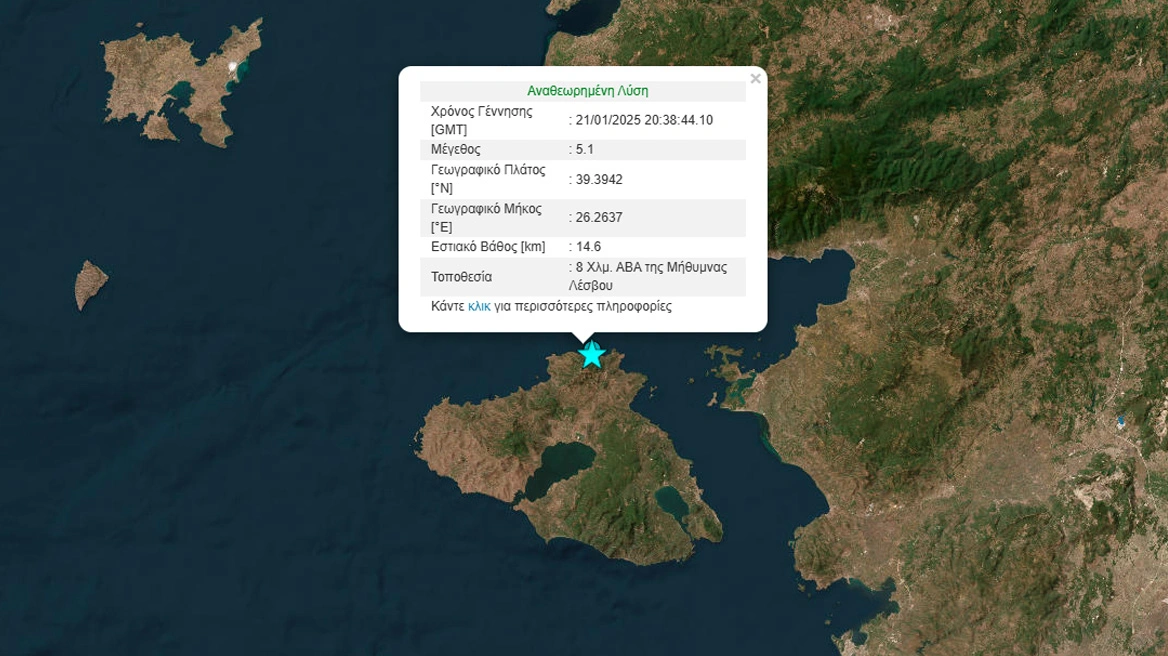 Αρκετά αισθητός ιδιαίτερα στη Βόρεια Λέσβο έγινε ο σεισμός 5,1 βαθμών της Κλίμακας Ρίχτερ που σημειώθηκε στις 22.38 στην περιοχή. Όπως δήλωσε στο ΑΠΕ-ΜΠΕ ο πρόεδρος του ΟΑΣΠ και καθηγητής Διαχείρισης Φυσικών Καταστροφών, Ευθύμης Λέκκας, η σεισμική δόνηση σημειώθηκε στον υποθαλάσσιο χώρο κοντά όμως στη χέρσο και δεν υπάρχουν αναφορές για ζημιές ενώ τόνισε ότι παρακολουθούν την εξέλιξη του φαινομένου.