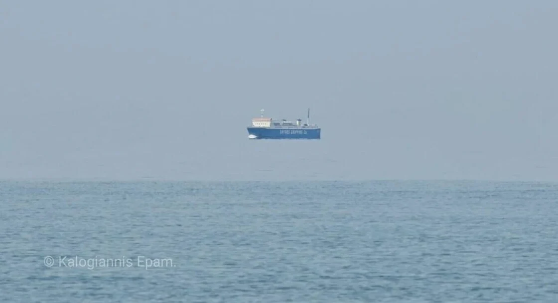 Πρόκειται για το φαινόμενο «αιώρησης» πλοίων που απαθανατίστηκε από φωτογράφο το απόγευμα της Τετάρτης (8/5) στην Κύμη, στην Εύβοια. Το «ιπτάμενο» πλοίο είναι το πλοίο «Αχιλλέας», που εκτελεί τη γραμμή Κύμη-Σκύρος. Στις φτογραφίες φαίνεται σαν να κινείται πάνω από την επιφάνεια της θάλασσας – ενώ στην πραγματικότητα έχει αντιστραφεί το είδωλό του, καθώς πρόκειται για μια οφθαλμαπάτη, σε ένα φαινόμενο που είναι γνωστό ως Fata Morgana.