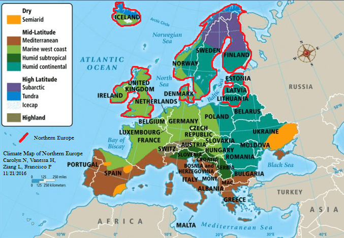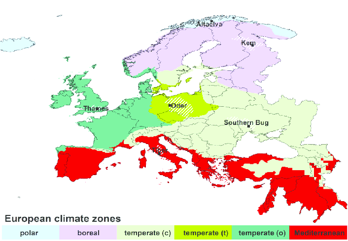 Σε σύγκριση με άλλες περιοχές του κόσμου που βρίσκονται σε ανώτερα μεσαία γεωγραφικά πλάτη, μέρη της δυτικής Ευρώπης εμφανίζουν ήπιους χειμώνες και υψηλότερες ετήσιες θερμοκρασίες (αν και τα καλοκαίρια είναι δροσερότερα από άλλες περιοχές που βρίσκονται στα ίδια γεωγραφικά πλάτη). Το Βερολίνο (Γερμανία), το Κάλγκαρι (Καναδάς) και το Ιρκούτσκ (Ρωσία) βρίσκονται περίπου στο ίδιο πλάτος. Ωστόσο, στο Βερολίνο οι θερμοκρασίες του Ιανουαρίου είναι περίπου 8 °C υψηλότερες από εκείνες στο Κάλγκαρι (αν και το Κάλγκαρι βρίσκεται σε πολύ μεγαλύτερο υψόμετρο από το Βερολίνο). Επίσης η μέση θερμοκρασία Ιανουαρίου στο Βερολίνο είναι σχεδόν 22 °C υψηλότερη από τη μέση θερμοκρασία για τον ίδιο μήνα στο Ιρκούτσκ.