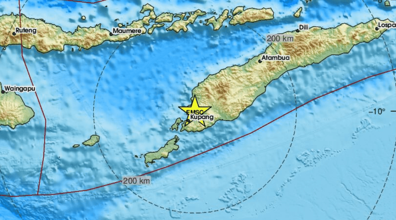 Σεισμική δόνηση μεγέθους 6 βαθμών σημειώθηκε πριν από λίγο στο δυτικό άκρο της νήσου Τιμόρ σύμφωνα με το Ευρωμεσογειακό Σεισμολογικό Κέντρο (EMSC) και το αμερικανικό ινστιτούτο γεωλογικών μελετών (USGS).
