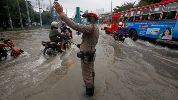 Ταϊλανδέζικα μέσα ενημέρωσης έδειξαν πλάνα από δρόμους που έχουν βυθιστεί στη λάσπη και κατοίκους που είχαν βρει καταφύγιο στις στέγες σπιτιών.